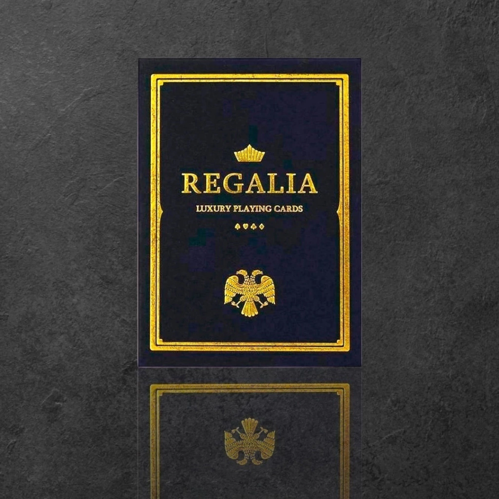 O Baralho Regalia, assinado por Shin Lim, é uma verdadeira obra-prima produzida pela Cartamundi, na Bélgica. Com acabamento Crushed Stock, as cartas são mais finas, leves e já vêm com um manuseio suave logo ao sair da caixa — perfeitas para faros e floreios com precisão.